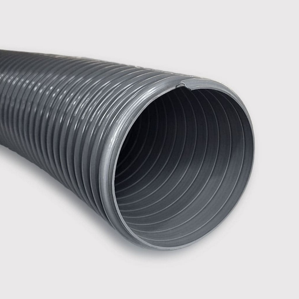Pry-IVCL Vácuo-Ar Cinza Leve. Indicada para serviços de exaustão e condução de ar, gases, poeira, etc... Tem como principais características a leveza e flexibilidade, permitindo um trabalho seguro e eficaz. PVC flexível cinza, reforçada com espiral de PVC rígido cinza. Dimensões 3/4" até 10"